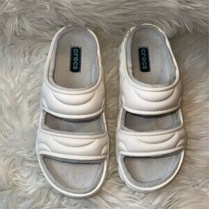 Crocs Classic Cozzzy Overpuff Slides Sandals White Fleece Lined Unisex M8 W10