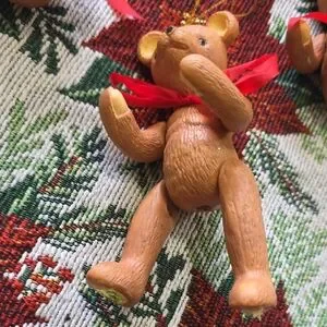 Vintage Jointed Porcelain Posable Chrismas Holiday Teddy Bear Ornaments Brown 3
