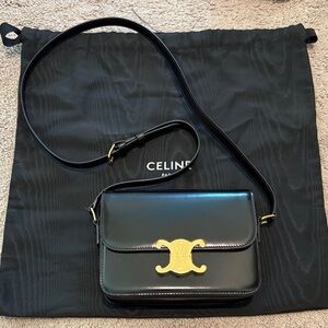 Celine Black Crossbody Bag with Gold Accent