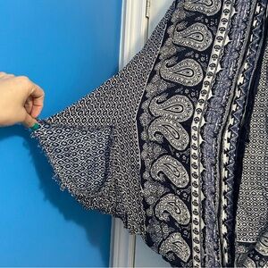 American Eagle Women’s Navy & White Paisley Cocoon Cardigan Kimono Size O/S