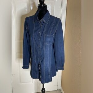 DG2 by Diane Gilman Dark Indigo Denim Shirt - Size Medium