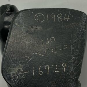 A Inuit soapstone sculpture depicting a sea lion. The sculpture is signed on the bottom by an unidentified artist and numbered BS-16929 with a copyright year 1984. With Canada Eskimo Art seal.