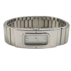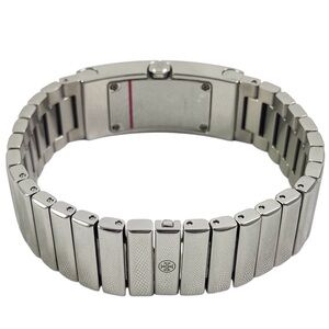 Chic Tory Burch watch with a metallic silver finish. Features a minimalist white dial.