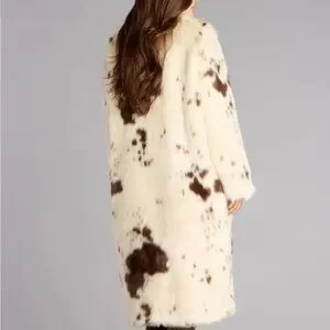 Elegant teddy coat with cream and brown design. Soft texture. Ideal for stylish outings.