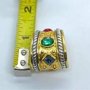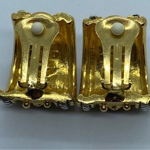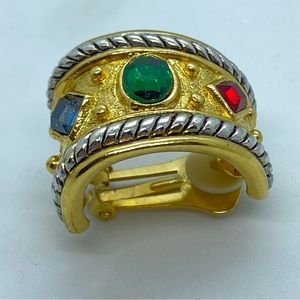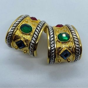 Vintage 80’s NWOT “Replica” Emerald Sapphire Ruby Rhinestone Gold Tone Clip Earrings