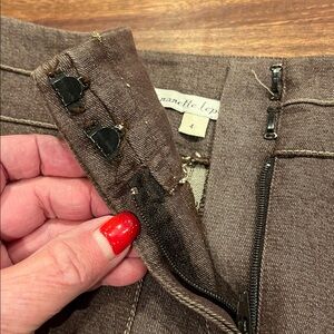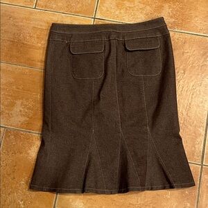 Nanette lapore brown denim like tulip skirt size 4. Adorable. Good stretch. See approx pics of measurements to insure fit. Very good pre owned condition