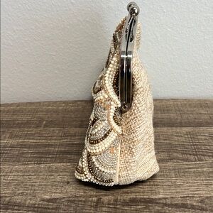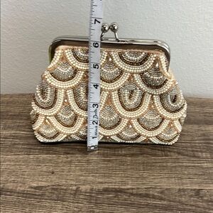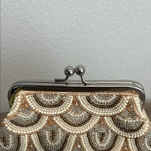 Beaded Cream & Gold Clutch w/ Crossbody Strap ✨
