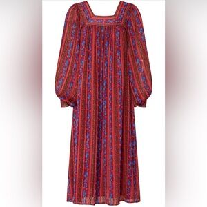 Step out in style with this elegant red and blue dress. Perfect for any occasion, this dress offers a flattering fit and vibrant colors.there is good thread throughout. No stretch. Jean Milburn dress from Sex Education.