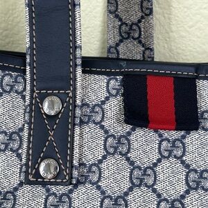 💯Authentic GUCCI GG Plus Monogram Medium Signature Web Loop Tote Navy🍀