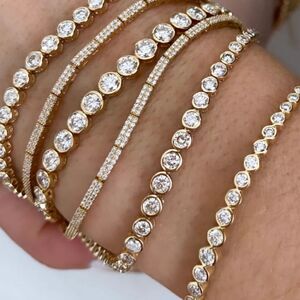 Tennis bezel set tennis bracelet perfect for stacking cubic zirconia diamonds bracelet in stainless steel 18k gold plated hardware