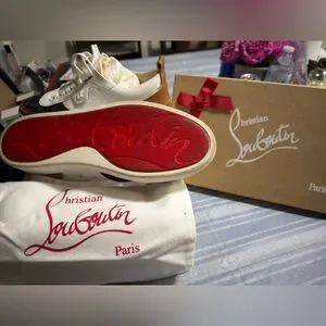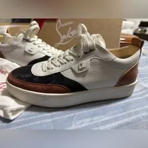 Christian Louboutin Men's White, Black, and Brown Sneakers authentic
