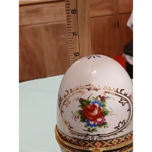 Decorative Porcelain Egg Trinket Box Hinged Rose Floral Gold Accent