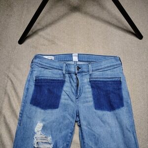 Keywords: True Religion Jeans, Bell Bottoms, Distressed Denim, Low Rise, Flared Jeans, Bootcut, Patched Pockets, Frayed Hem, Designer Denim, Statement Jeans, Boho Chic, Y2K Fashion, Vintage Wash