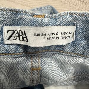 Zara size 2 wide leg jeans. Light wash denim. No care tags attached. Distressed, raw hems.