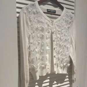 Karl Lagerfeld | Authentic White Floral Sweater Sz XL