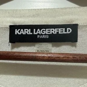 Elevate your wardrobe with this elegant white floral sweater from Karl Lagerfeld. Perfect for any occasion, this sweater combines style and comfort effortlessly.