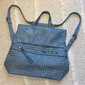 Stylish and versatile blue woven leather backpack. Perfect for everyday use with a chic design.