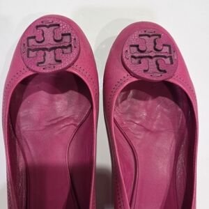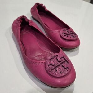 Tory Burch ICONIC Minnie Travel Ballet Flats in 'Love Pink' Leather SIZE 7.5