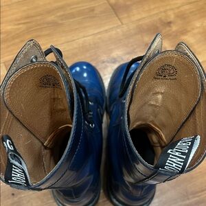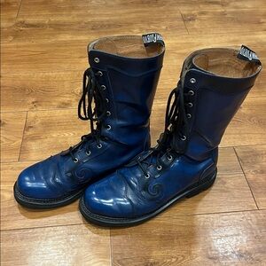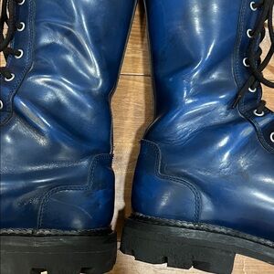 John Fluevog Tall Angels 10 Eye Derby Swirl Blue Combat Boots