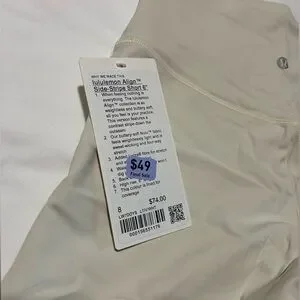 NWT! Lululemon Align biker shorts - cream colored with white line down each side. Size 10.