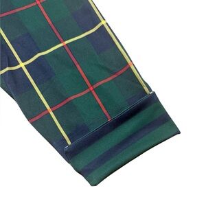 Green plaid top, stand up ruffle collar, 3/4 sleeve, contrast turn up sleeve, XL