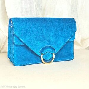 Banana Republic bag • blue suede bag • turquoise crossbody • suede clutch • envelope clutch • gold ring bag • statement bag • wedding guest bag • evening crossbody • colorful handbag