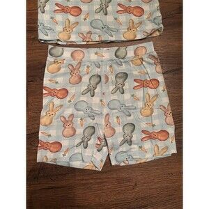 Keywords: Miozing Aec, kids pajama set, unisex kids pajamas, 2 piece pajama set, bunny print pajamas, carrot print pajamas, blue pajamas, gingham print, short sleeve pajama top, crew neck, pajama shorts, elastic waist, size 5-6 years, standard fit, NWT