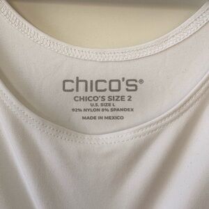 Simple and elegant white tank top by Chico's. Ideal for layering or standalone wear. Essential for any wardrobe.