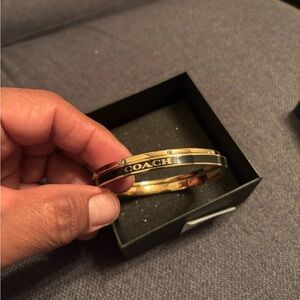 COACH Gold Enamel Logo Bangle Bracelets 2 Piece Set