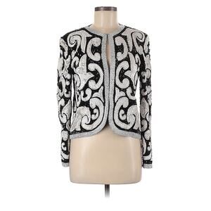 VTG Joan Leslie Evenings Sequin Beaded Statement Jacket Black White Medium