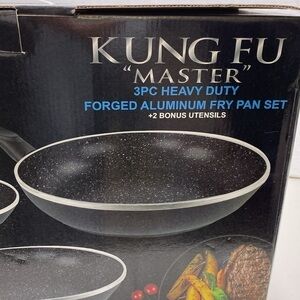 $99 NEW! Heavy Duty Forged Aluminum Fry Pan 3 Piece Set + 2 Bonus Utensils