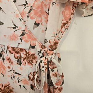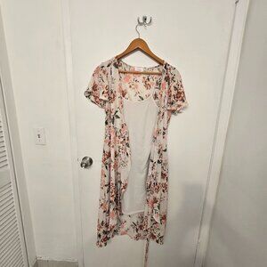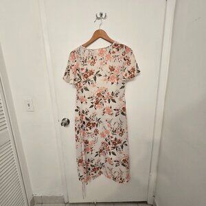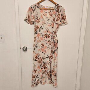 Time and Tru Floral Wrap Midi Dress Tie Waist Short Sleeve Size M