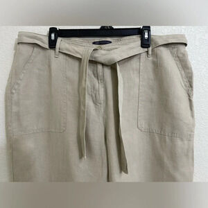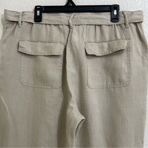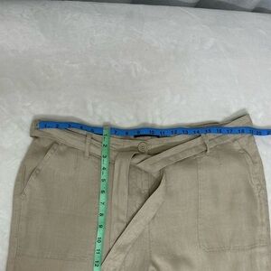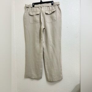 These tan pants feature a straight leg design crafted from a lightweight material, offering a sleek and versatile look. Ideal for both casual and business casual occasions, they provide a comfortable fit and a polished appearance. 100% new linen without tag