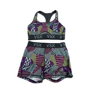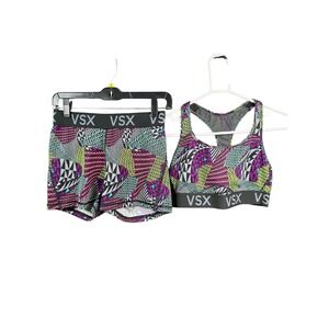 Victorias Secret VSX Sport Bra Shorts Set Womens Medium Multicolor Geometric