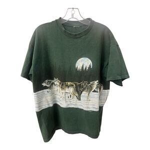 Vintage 1991 Habitat Green XL Timberwolves Pack Moon Single Stitch T-Shirt
