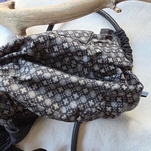 large oversized black leather and coated nylon vintage Lockheart shoulder bag. has small cargo pocket on the outside. Preloved condition. does have some imperfections in the nylon coating which is shown in the photos. All sections of interest as well any known flaws have been documented in the photos and noted as thoroughly as possible. if there are no known flaws, none will be noted. Please feel free to ask any questions before purchase 🙂. Please see photos for measurements shown. y2k