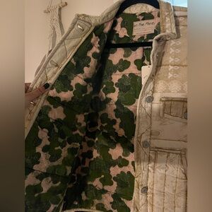 Stylish beige jacket with intricate patterns. Lightweight and versatile. Ideal for layering.