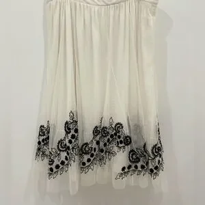 OSCAR DE LA RENTA WHITE BLACK TULLE RUNWAY DESIGNER SKIRT WAIST 34” SZ 12 ZIPPER