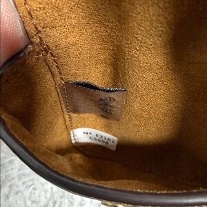 Compact Coach Bag Charm or AirPods Case in tan with signature design. Gold hardware and keychain included.
