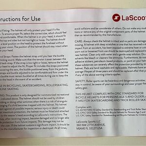 This is a high quality youth helmet from LaScoota designed for biking skateboarding roller skating and inline skating. Bright fun multicolor geometric design kids love. Adjustable fit system with removable padding for comfort. Meets CPSC safety standards for bicycle helmets and ASTM standards for skateboarding and roller skating.
