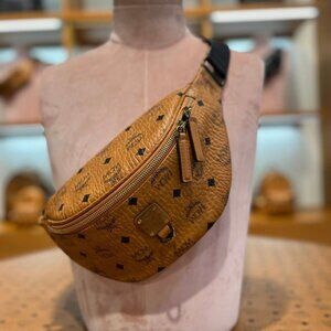 MCM Fursten Visetos Small Belt Bag In Cognac