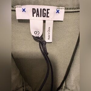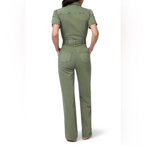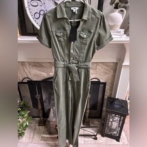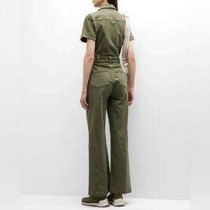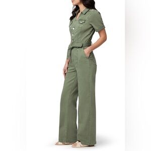 Presenting a brand new with tags short sleeve jumpsuit from Paige. This is the Brooklyn model and retails for $299. The color is called Vintage Ivy Green. The size is 00. Bust pit to pit is approximately 31” and can stretch a bit. Waist is approximately 23”. Hips are approximately 34.5” and can also stretch.
