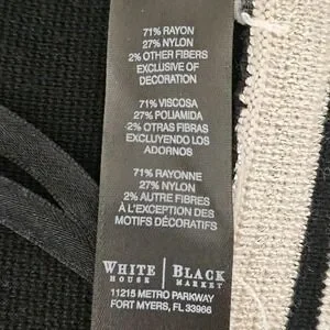 Material: 71% rayon, 27% nylon, 2% other fibers exclusive of decoration; knit fabric.
