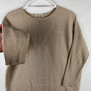 🌺 3/$25 🌺 Vila Milano | Beige Rhinestone 3/4 Sleeve Ribbed Sweater | Womens Sz M