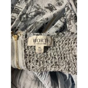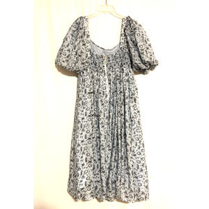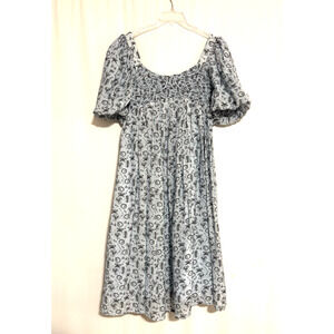 Worth Collective Maxi Dress XL Blue Smoked Puff Sleeve Aline Boho