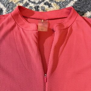 CALIA Golf Flutter Sleeve 1/4 Zip Polo Shirt | Size XXL | Textured | Collared neckline | 1/4 zipper detail | Moisture wicking fabric | Lightweight | Guava pink color