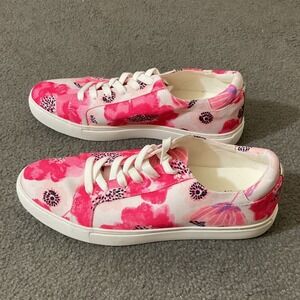 Kenneth Cole NY Kam Sz 9.5 canvas sneaker pink hot pink black white floral print