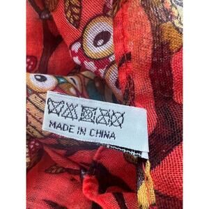 Owl On a Branch Print Ladies Fashion Maxi Scarf Wrap Sarong Red A003152
