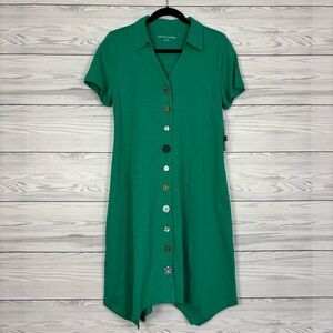 Soft Surroundings Danielle Button Dress Parakeet Green Beachy NWT Coastal Small