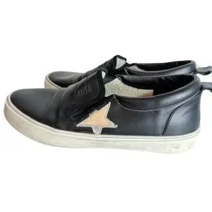 Golden Goose Hanami Black Leather Star Slip-On Sneakers Size 38